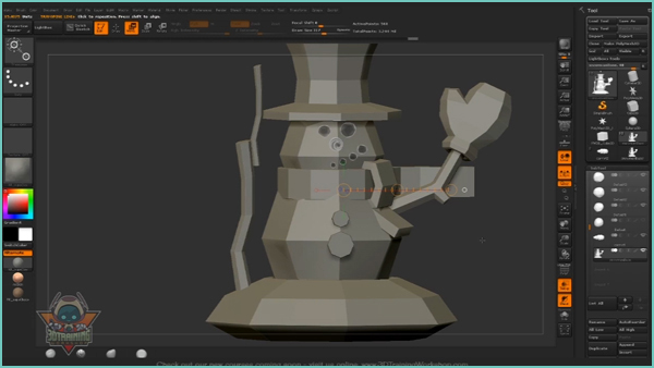 We begin our training learning the proper methods for importing in 3D base meshes into ZBrush and preparing the subtools for sculpting.